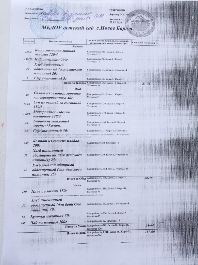 Постановление об утверждении родительской платы (горячее питание)