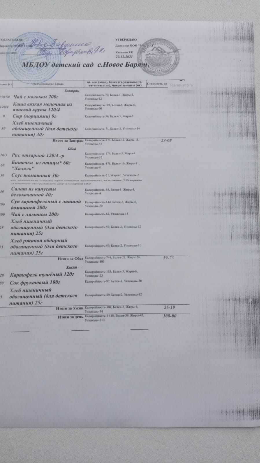 Постановление об утверждении родительской платы (горячее питание)