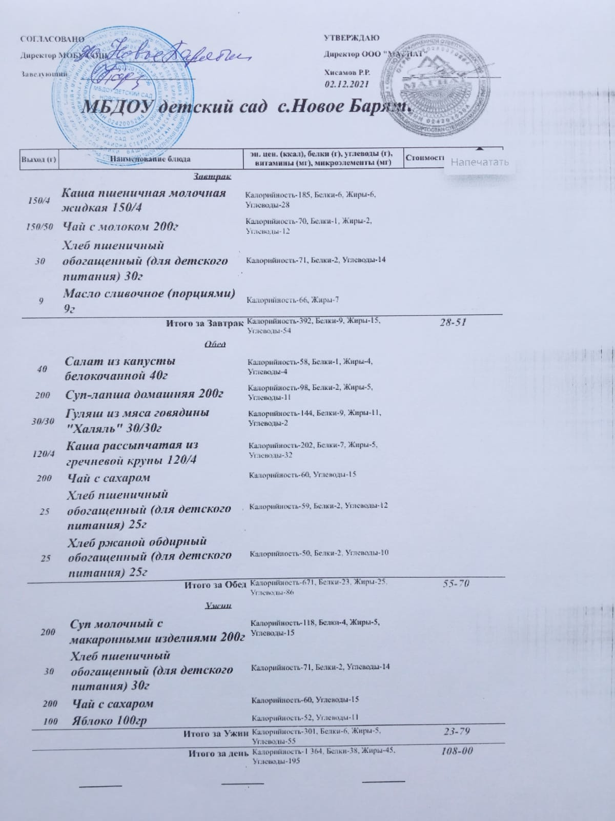 Десятидневное меню