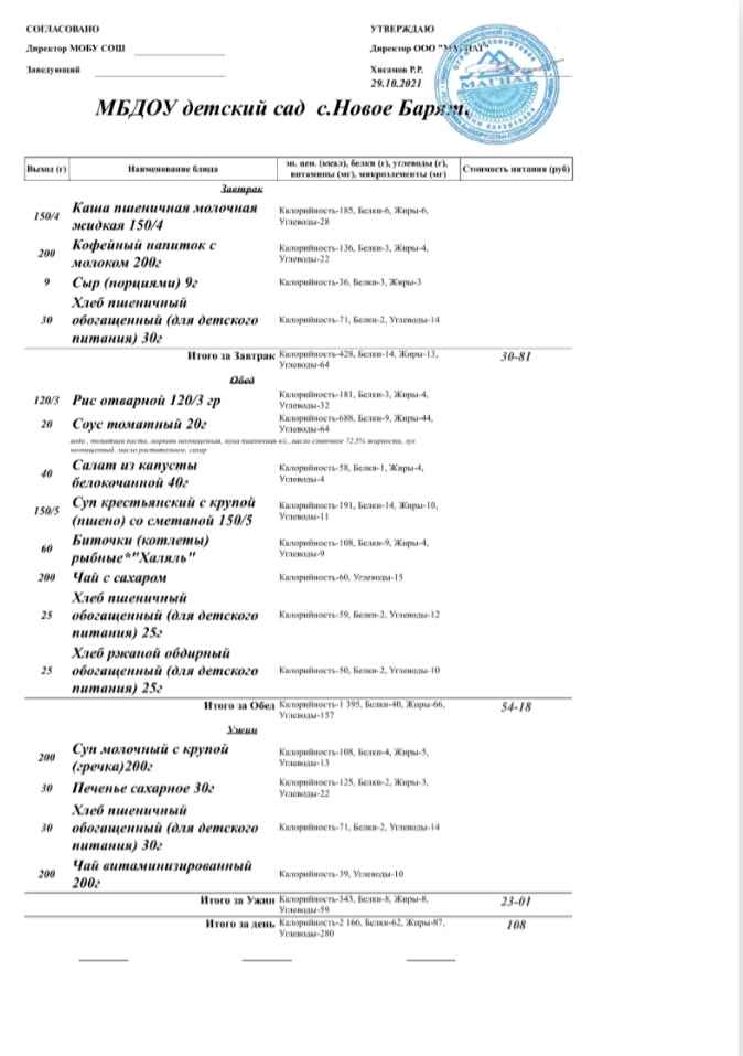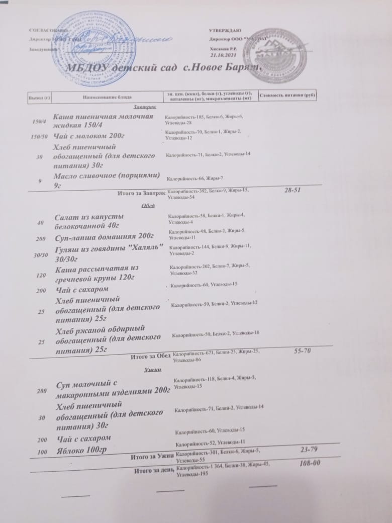 (меню на 21 октября 2021г.)