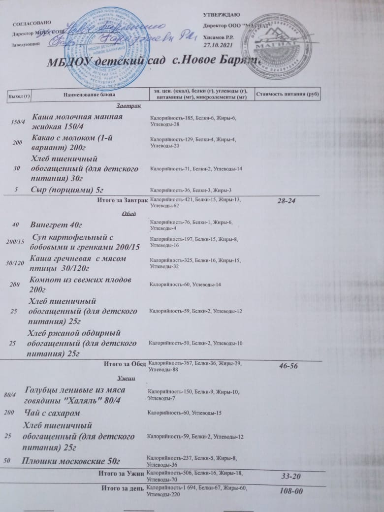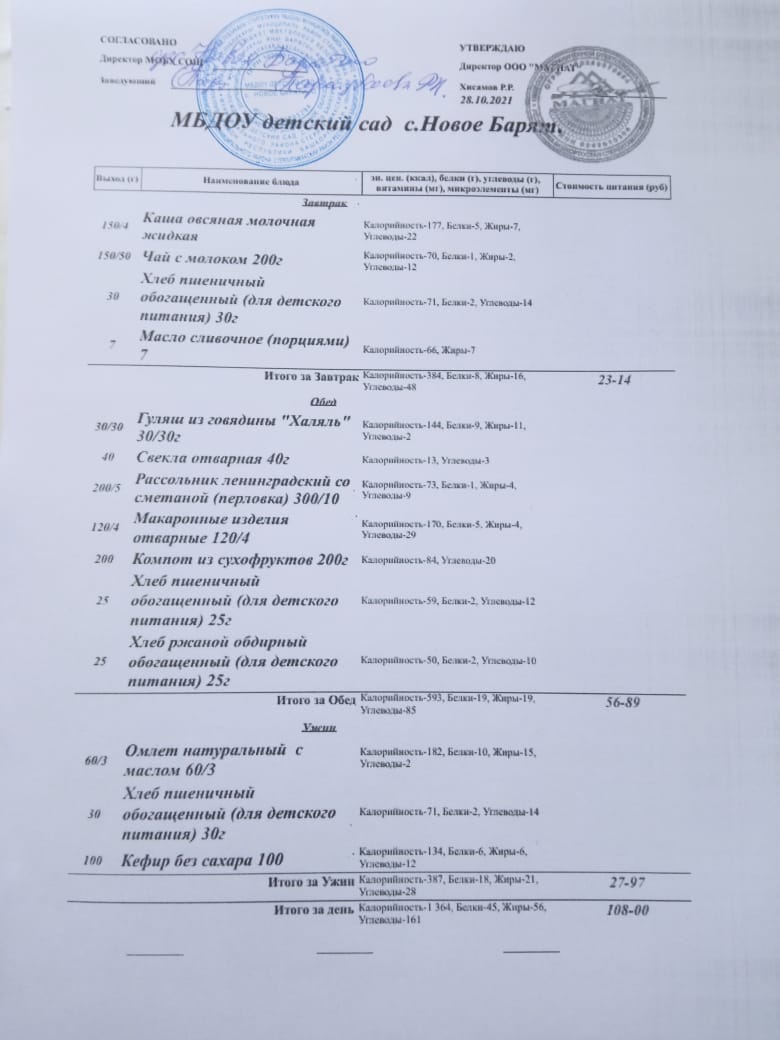 (меню на 27 октября 2021г.)