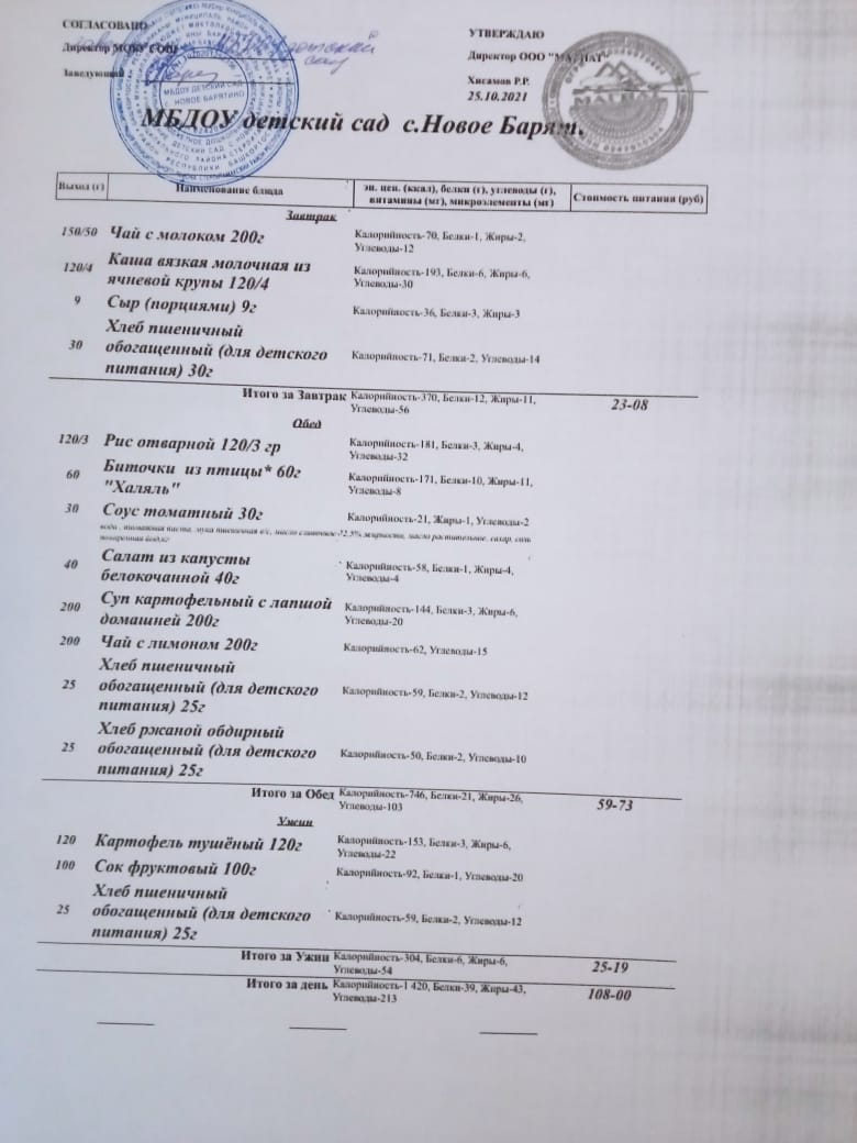 (меню на 25 октября 2021г.)